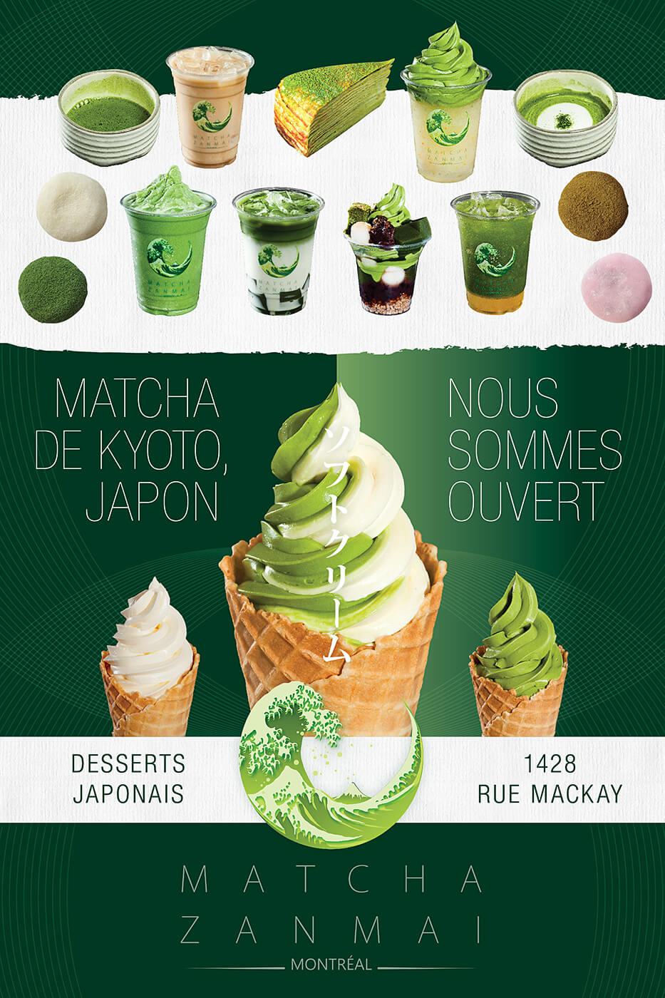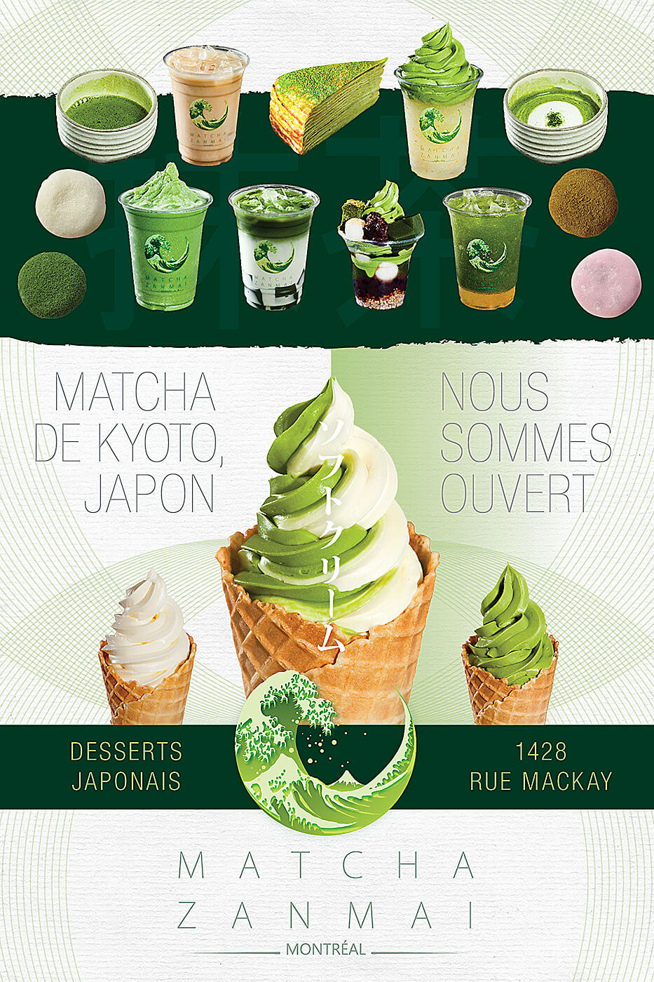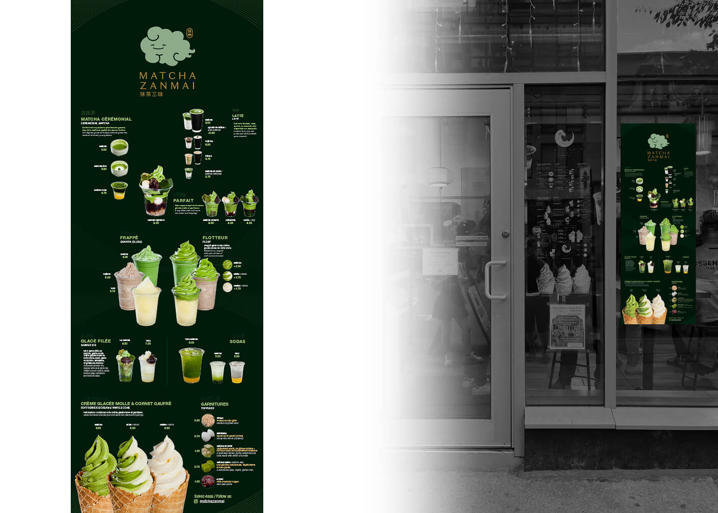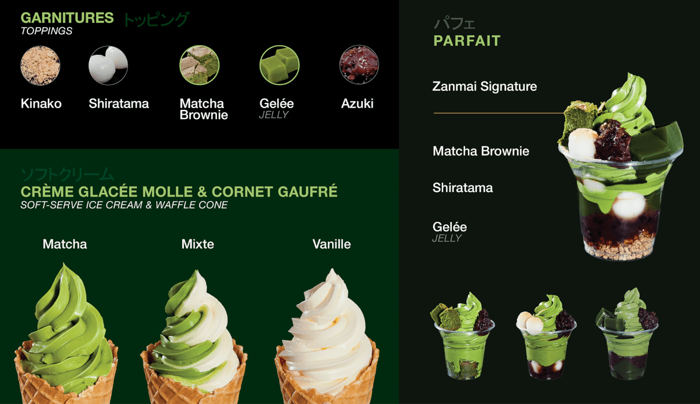 Design and photos for Matcha Zanmai, a cafe that has a focus on Japanese desserts made with matcha.